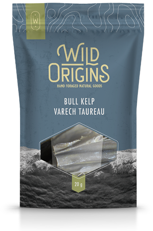 Slow-Dried Bull Kelp from the West Coast of Canada. Each Wild Origins Foraged Food is hand-picked by our select foragers. All of our seaweed is dried away from UV light and within 24 hours of harvest on location off the west coast of Vancouver Island or the North coast of Haida Gwaii.